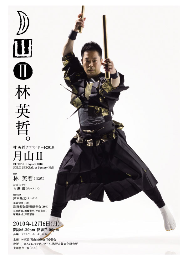 今年、林英哲は「月山 Ⅱ 」と題してライフワークであるソロコンサートを皆様の前で実現しました。特別ゲストにヴァイオリンの古澤巌、真言宗豊山派の聲明も参加。