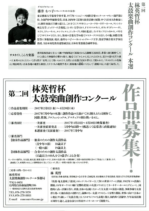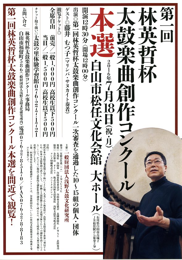 是非、太鼓文化の盛んな北陸の人達に聞いてもらいたい(見てもらいたい)との思いで、今回参加が実現しました。