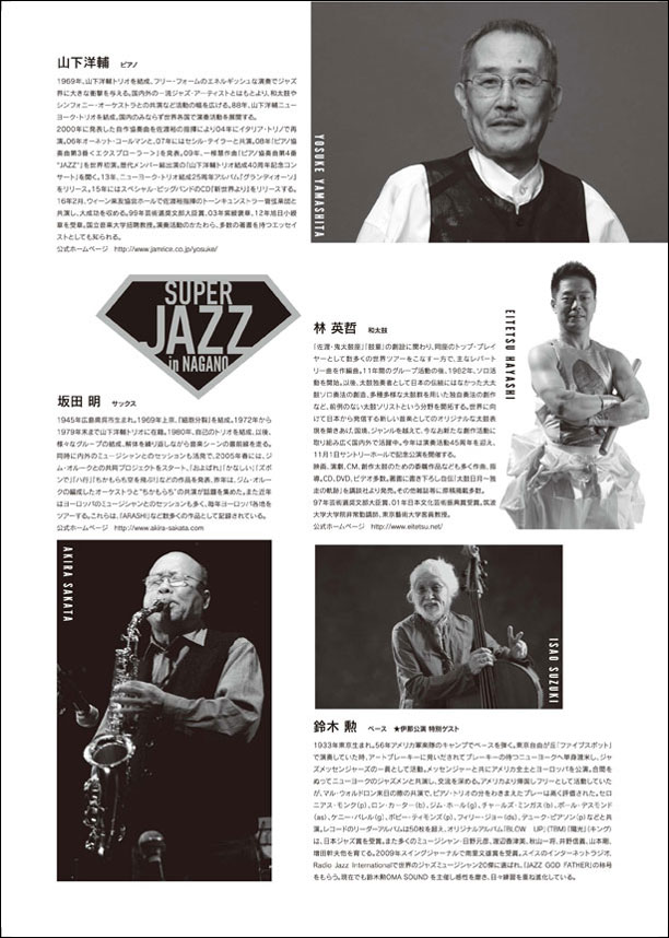会場:長野(伊那市)・伊那文化会館 大ホール 開演:14:00 出演:山下洋輔、坂田 明、林 英哲、特別ゲスト:鈴木 勲 問い合わせ:長野県伊那文化会館 0265-73-8822