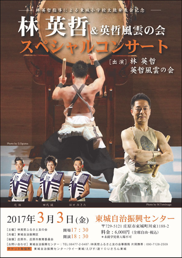 ※ 翌3月16日(木)福島・相馬市民会館での「『復興祈願』コンサート」にも林 英哲、英哲風雲の会が出演する予定です。(詳細未定)