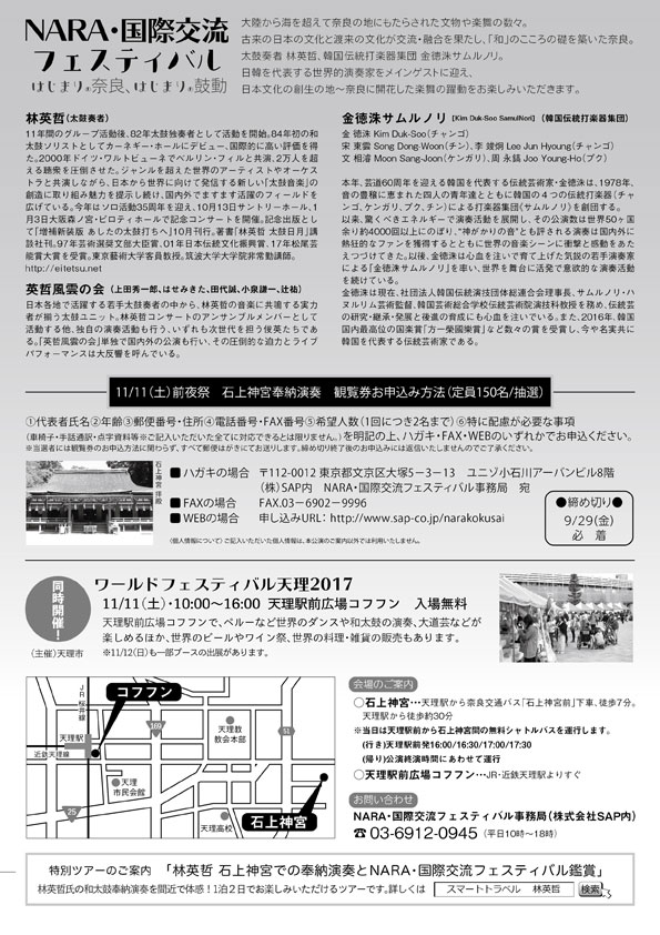 問い合わせ:NARA・国際交流フェスティバル事務局(株式会社SAP内) 03-6912-0945(平日10:00~18:00)