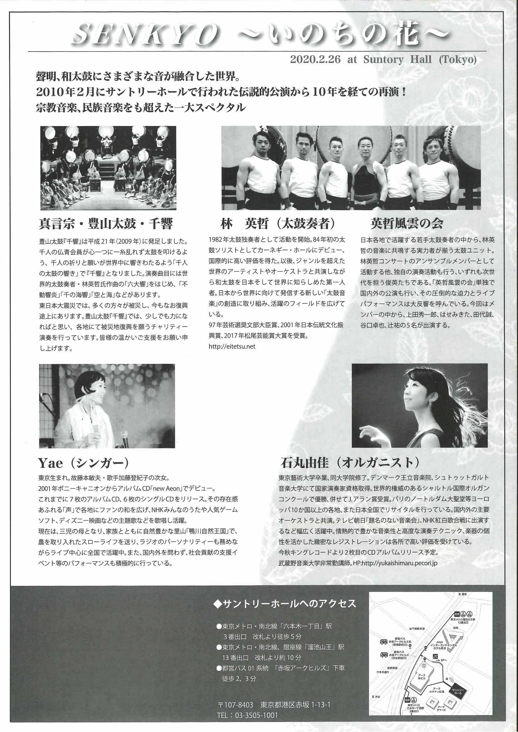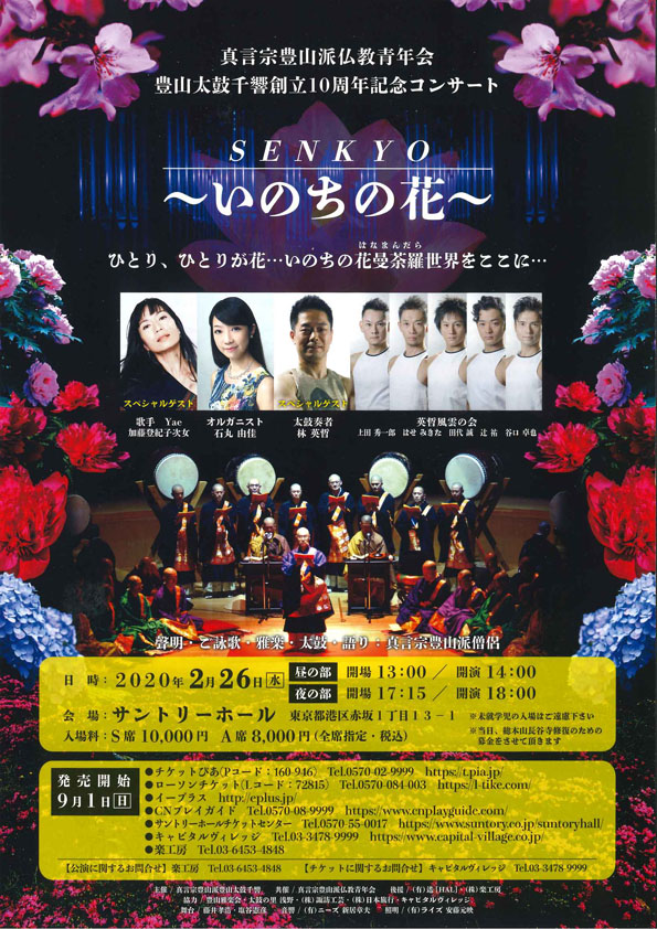 出演:真言宗・豊山太鼓・千響、林 英哲、英哲風雲の会、Yae(シンガー)、石山由佳(オルガニスト)