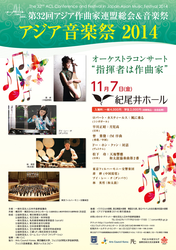 会場:東京・紀尾井ホール 開演:19:00 出演:東京フィルハーモニー交響楽団 ジャン・ティン(中国琵琶)、ブイ・レー・チ(ダンバウ)、林 英哲(和太鼓) 指揮:松下 功、他 問い合わせ:日本作曲家協議会 03-6276-1177(月~金 / 平日10:00~17:30) *『天地響応 和太鼓協奏曲第2番』でのソリスト出演。