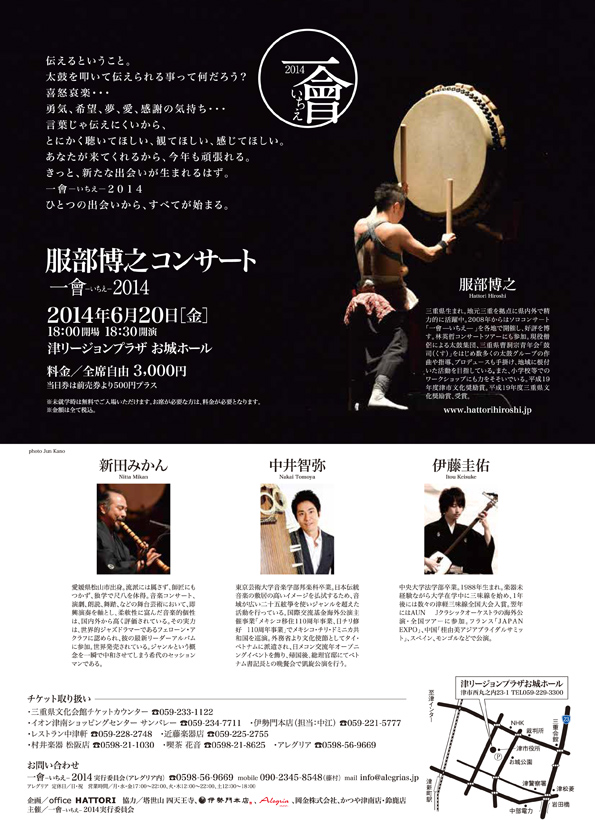 問い合わせ:一會―いちえ―2014実行委員会(アレグリア内) 0598-56-9669