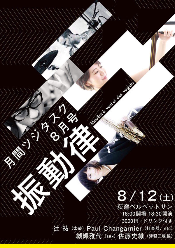 出演:辻 祐(太鼓)、Paul Changarnier(打楽器、etc)、纐纈雅代(sax)、佐藤史織(津軽三味線)